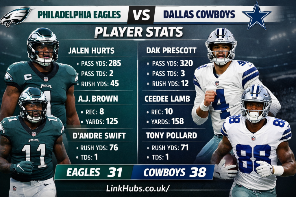 The rivalry between the NFC East’s most iconic franchises has always been about more than wins and losses. Every clash produces headline-worthy performances, tactical adjustments, and statistical narratives that shape playoff races and redefine player legacies. When fans and analysts search for philadelphia eagles vs dallas cowboys match player stats, they’re not just looking for numbers—they want context, meaning, and insight into how elite athletes influence outcomes snap by snap.